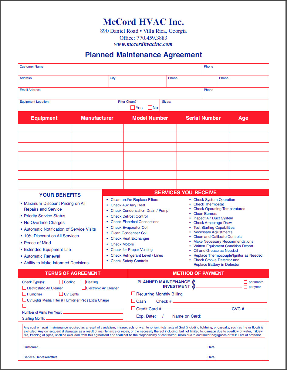 mccord hvac inc planned maintenance from air conditioning maintenance contract template