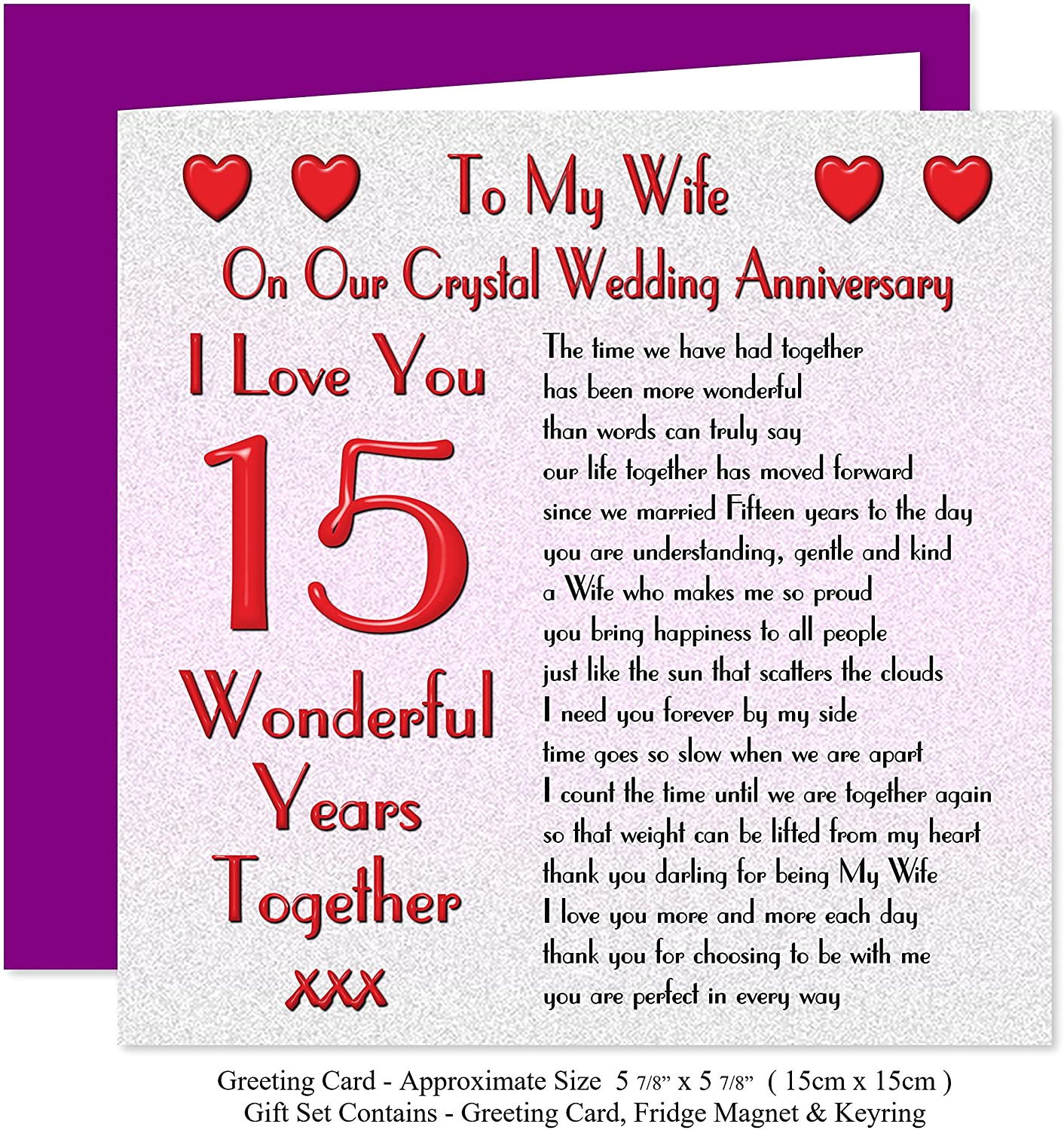 my wife 15th wedding anniversary gift set card keyring fridge magnet present on our crystal anniversary 15 years sentimental verse i love from anniversary card verse for wife