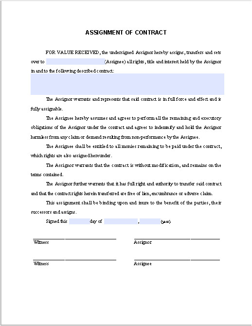 assignment of contract template sample form biztree com from assignment of construction contract template