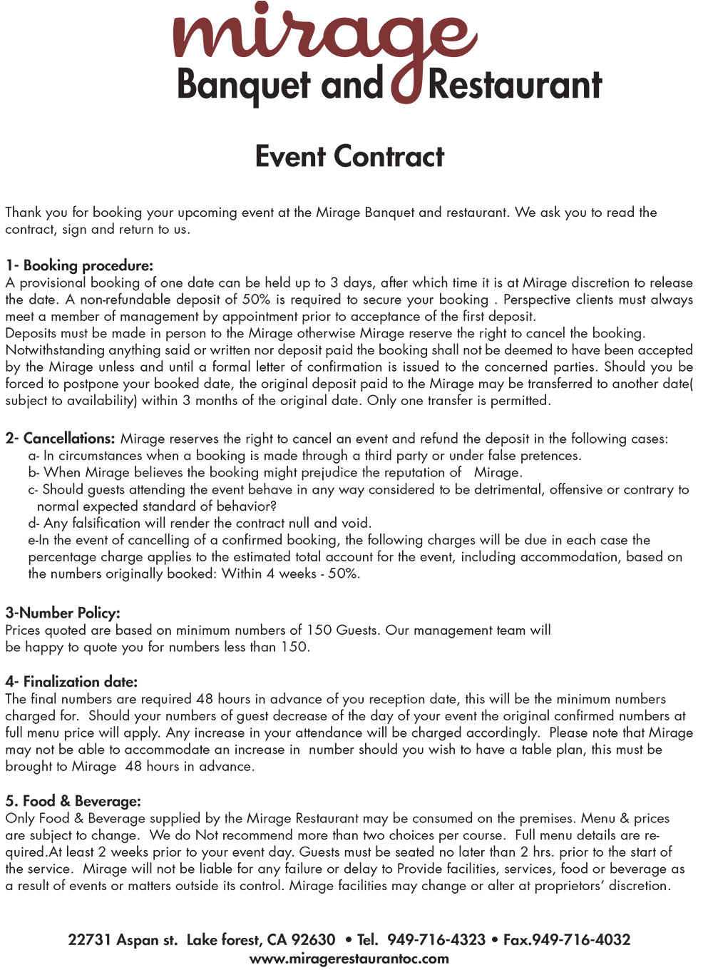 event contract mirage afghan banquet restaurant in from banquet hall contract template