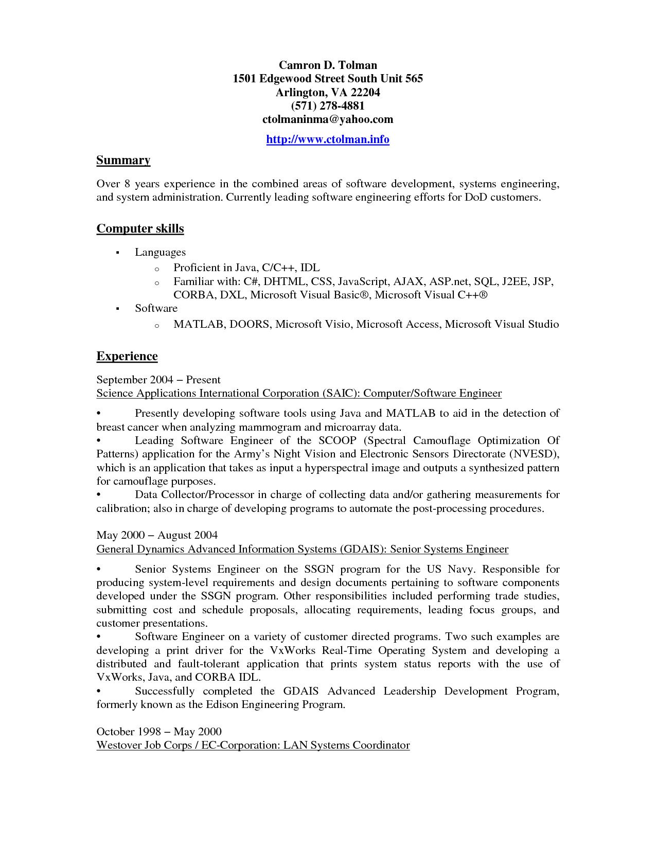 This resume template is the assimilation of chronological and effective formats. It is used similar to you dependence more objector and focused resume for any particular position. The sequence of sections in this template is as follows: