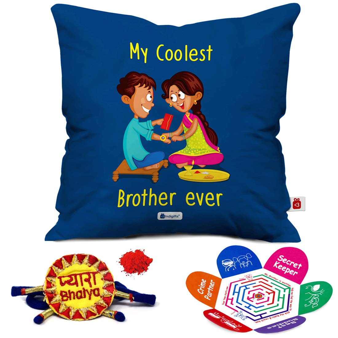 indigifts rakhi for brother pyara bhaiya with roli rakshabandhan greeting card handsome brother belongs to me beidge printed 12×12 cushion with from beautiful raksha bandhan greeting card