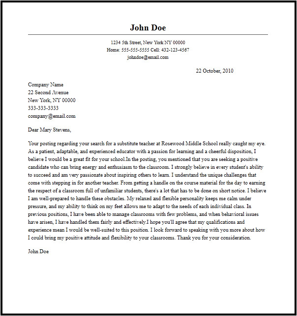Cover Letter Examples for Substitute Teachers has a variety pictures that amalgamated to find out the most recent pictures of Cover Letter Examples for Substitute Teachers here, and as well as you can get the pictures through our best Cover Letter Examples For Substitute Teachers collection. Cover Letter Examples for Substitute Teachers pictures in here are posted and uploaded by Adina Porter for your Cover Letter Examples For Substitute Teachers images collection. The images that existed in Cover Letter Examples for Substitute Teachers are consisting of best images and high environment pictures.