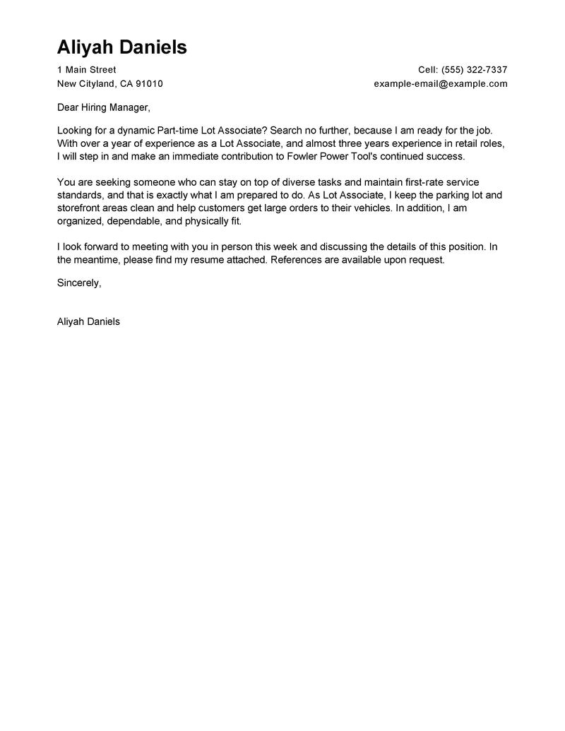 leading professional part time lot associates cover letter from Cover Letter For Part Time Job In Retail