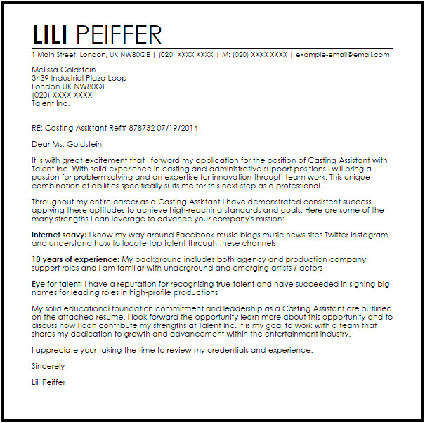 casting assistant cover letter sample cover letter from Cover Letter For Talent Agency