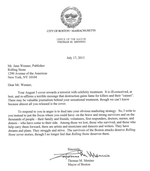 boston mayor menino writes letter to rolling stone from Cover Letter To A Publisher