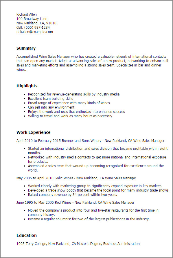 wine sales manager resume template best design tips from Cover Letter Wine Sales