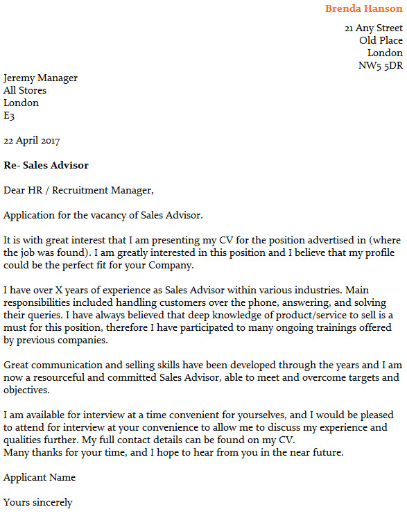 sales advisor cover letter example icover org uk from Covering Letter For Sales Assistant