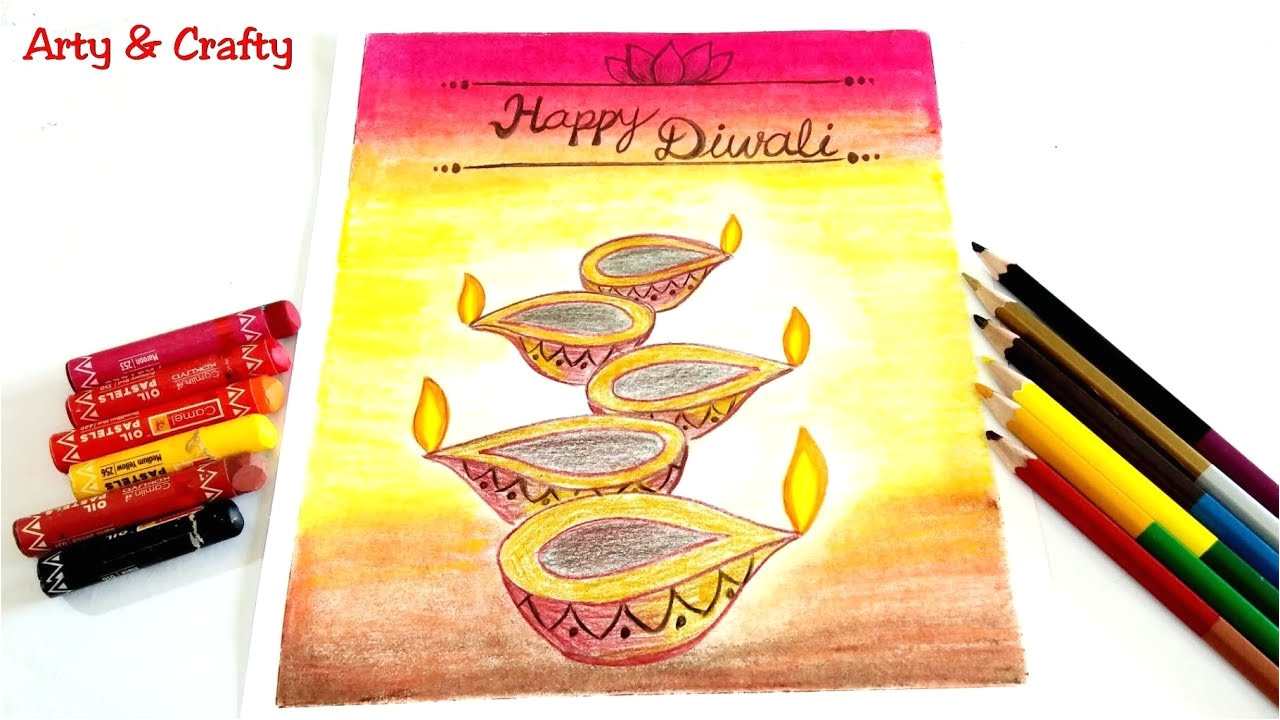 easy diwali drawing diwali diya drawing how to draw diwali drawing artyandcrafty from diwali greeting card making competition