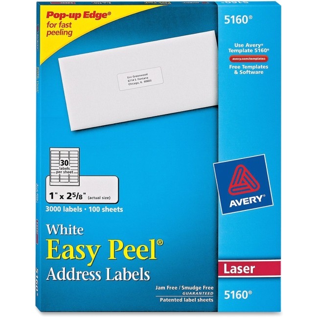 avery 5160 quot easy peel quot labels 1 quot x2 5 8 quot 3000 pk genuine ebay from easy peel labels avery template 5160
