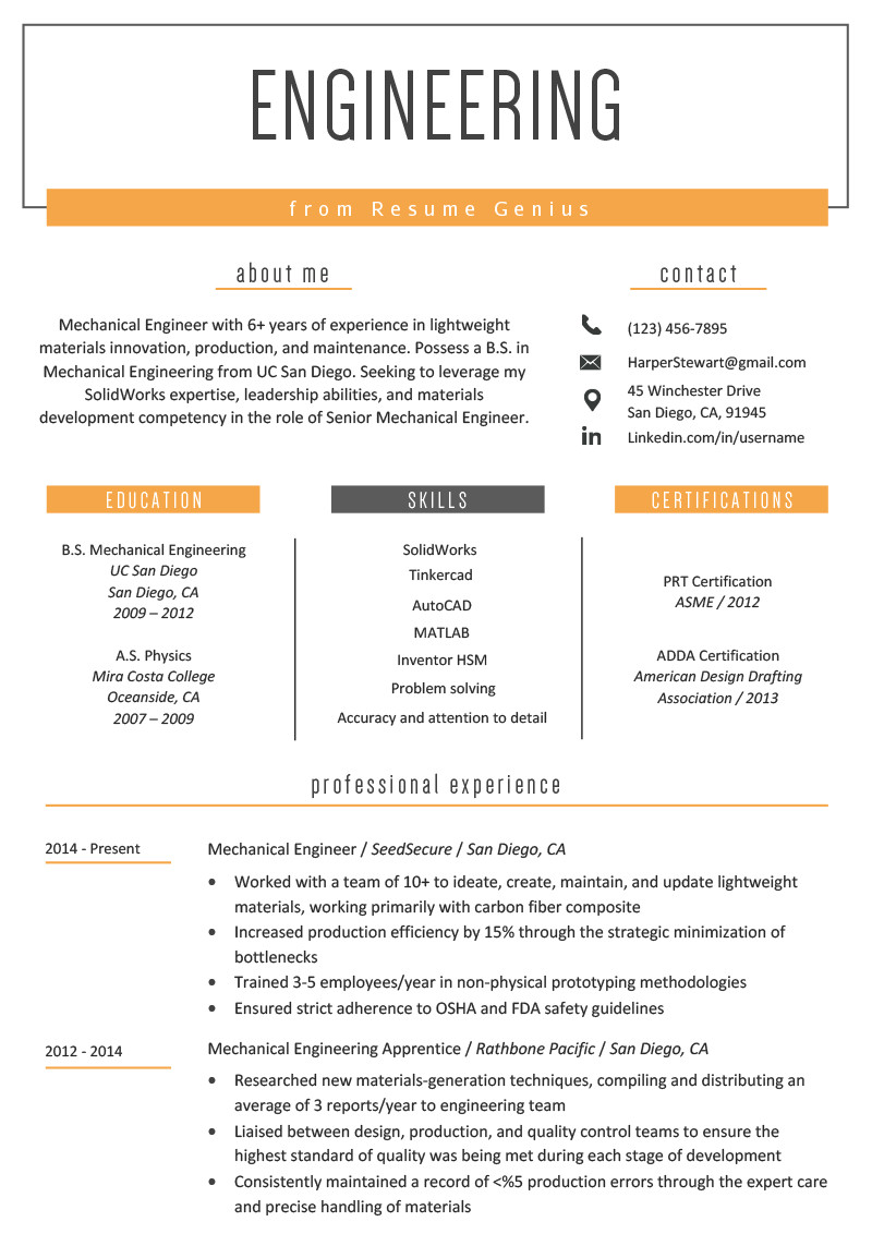 engineering resume example writing tips resume genius from Engineering Resume Examples 2018