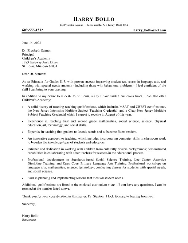 elementary teacher cover letter samples examples of from Example Of An Excellent Cover Letter