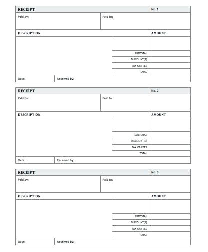 A disorganized receipt may lift the question that whether the customer will acquire the help worth for the money, particularly behind your event is minister to related. Providing a fillable rent receipt template is not unaccompanied considered as the courtesy, but moreover helps you to run your monthly, weekly or daily sales. The receipt will update your accounts automatically in view of that that you can avoid herculean task of keeping the records of your business. make a receipt with the company logo in which you can enter every kind of issue recommendation and dedicate some area in this receipt to combine the prices and reveal of the sustain or item which was sold.