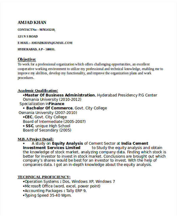 over 10000 cv and resume samples with free download mba from Finance Fresher Resume Format
