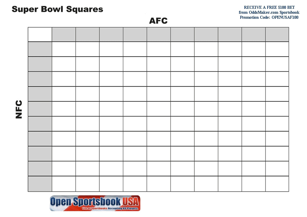 super bowl squares 2016 template 100 squares from Free Super Bowl Pool Templates
