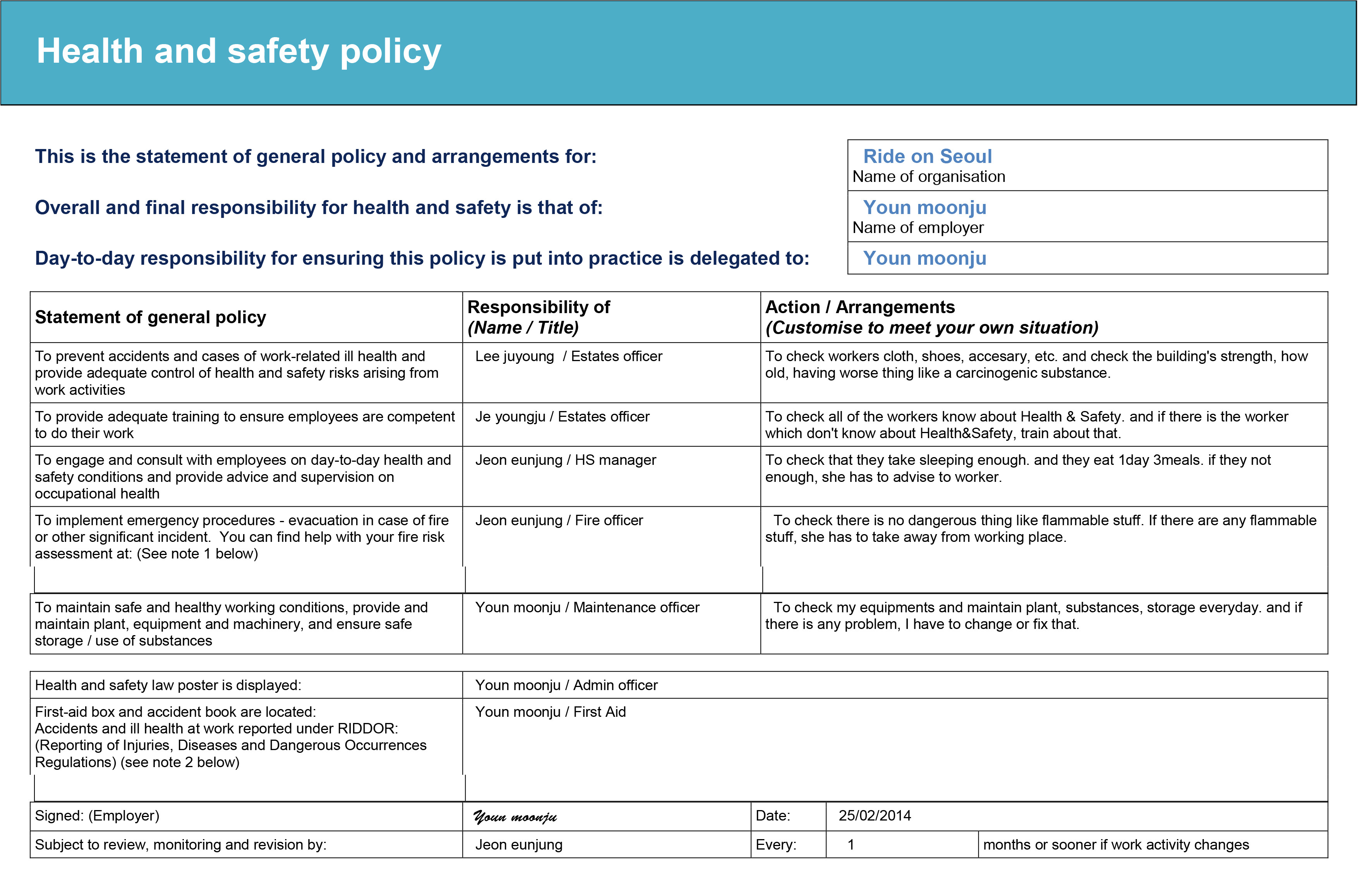 2 6 health and safety implications 2014 joy youn from Health And Safety Forms Templates