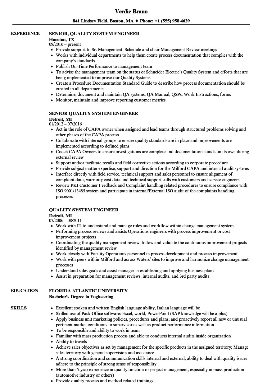 quality system engineer resume samples velvet jobs from Junior System Engineer Resume