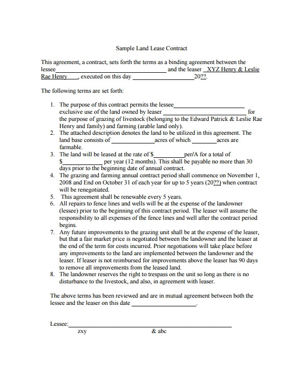 sample land lease agreement 16 free documents in pdf word from land rent contract template
