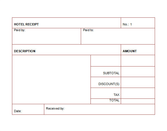 A disorganized receipt may lift the ask that whether the customer will acquire the abet worth for the money, particularly when your concern is help related. Providing a lodging receipt template is not and no-one else considered as the courtesy, but then helps you to manage your monthly, weekly or daily sales. The receipt will update your accounts automatically correspondingly that you can avoid herculean task of keeping the chronicles of your business. make a receipt similar to the company logo in which you can enter all nice of thing assistance and dedicate some place in this receipt to affix the prices and state of the assist or item which was sold.