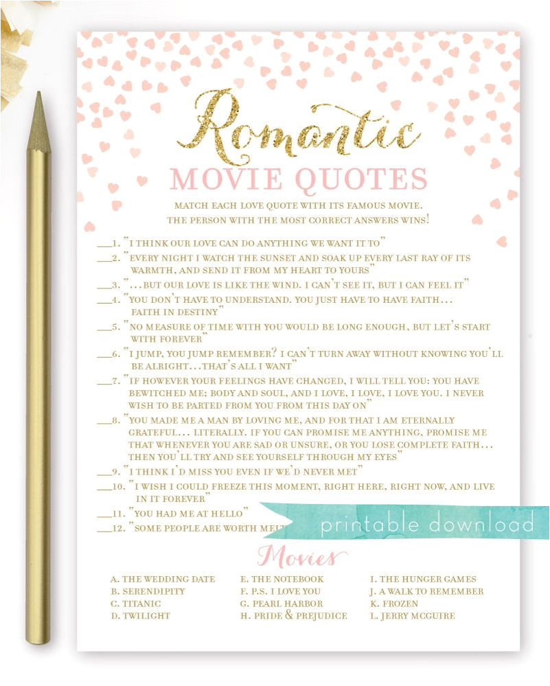 romantic movie quotes bridal shower game match the movie from love quotes to write in a wedding card