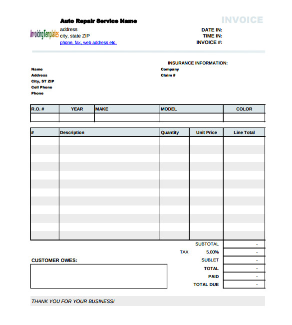 12 sample auto repair invoice templates to download from mechanic receipt template free