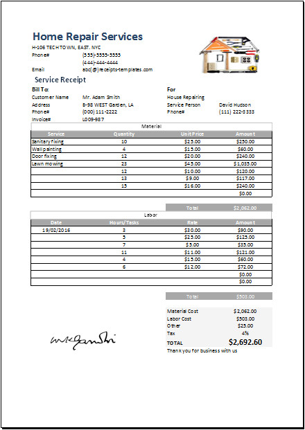 ms excel home repair receipt template receipt templates from mechanic receipt template free