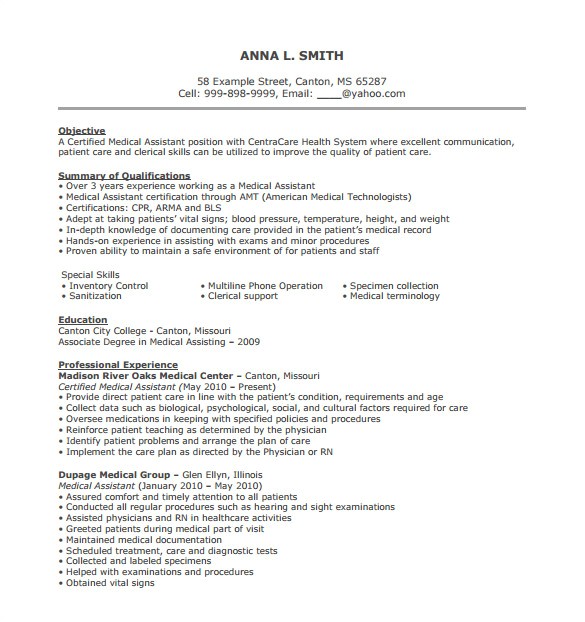 5 medical assistant resume templates doc pdf free from medical assistant resume templates free