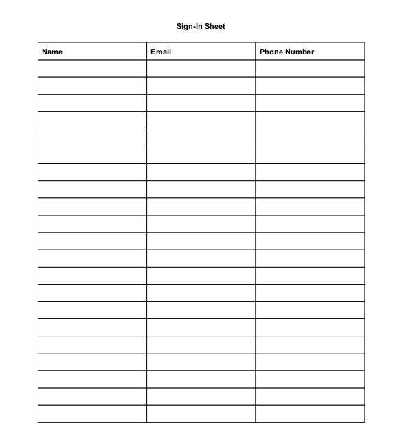 sign in sheet template from name email phone number template