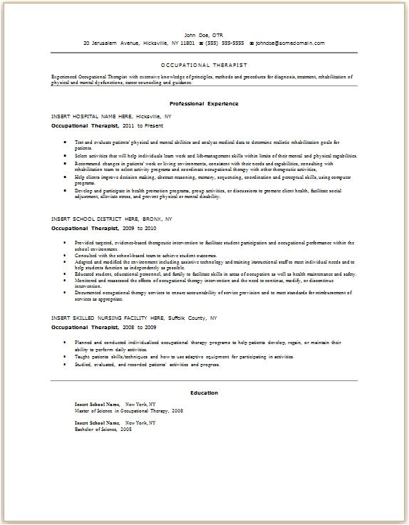 occupational therapy resume templates http from Occupational Therapy Student Resume