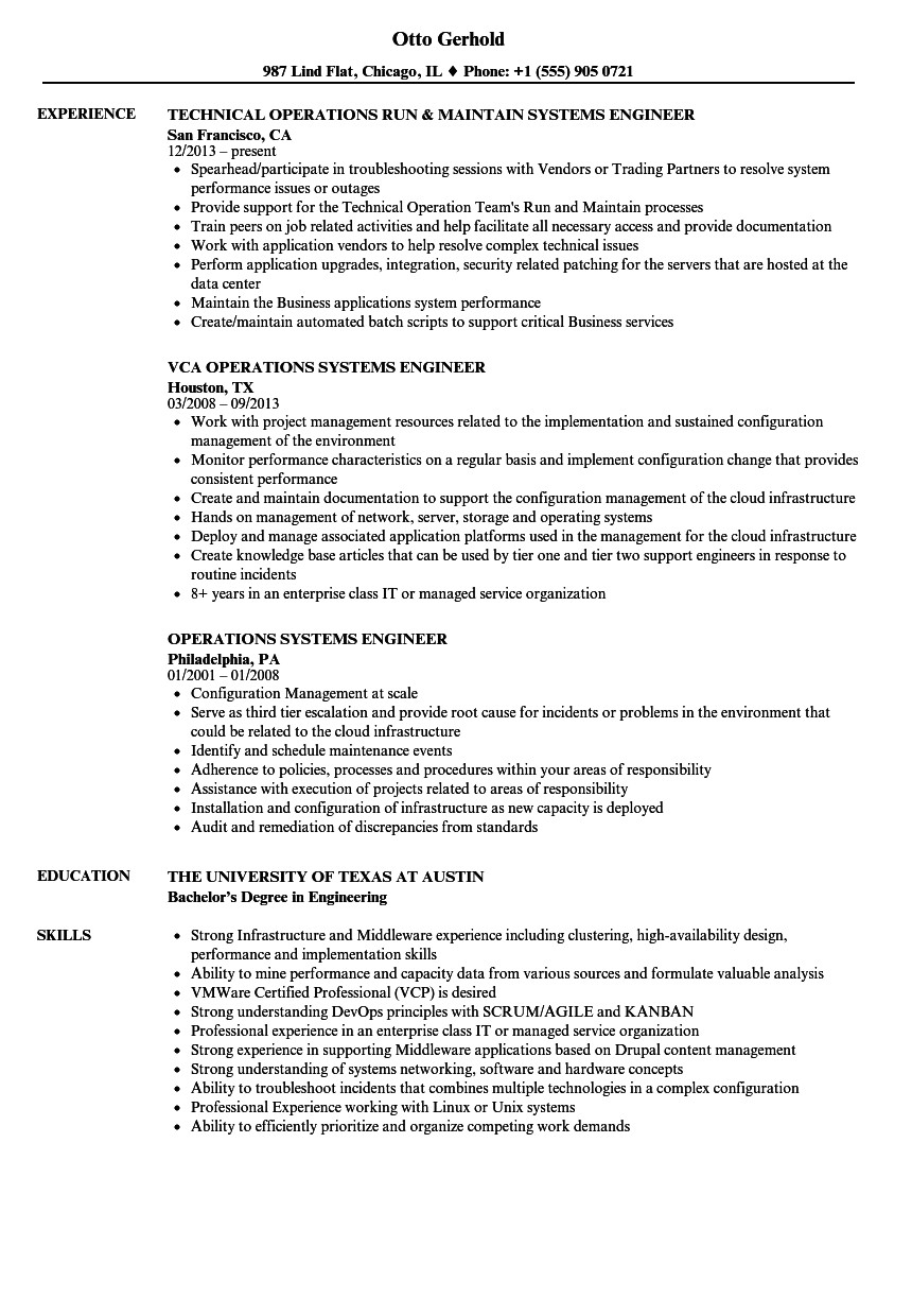 operations systems engineer resume samples velvet jobs from Operation Engineer Resume