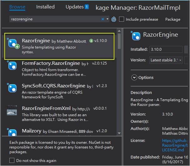 nuget from razorengine email template