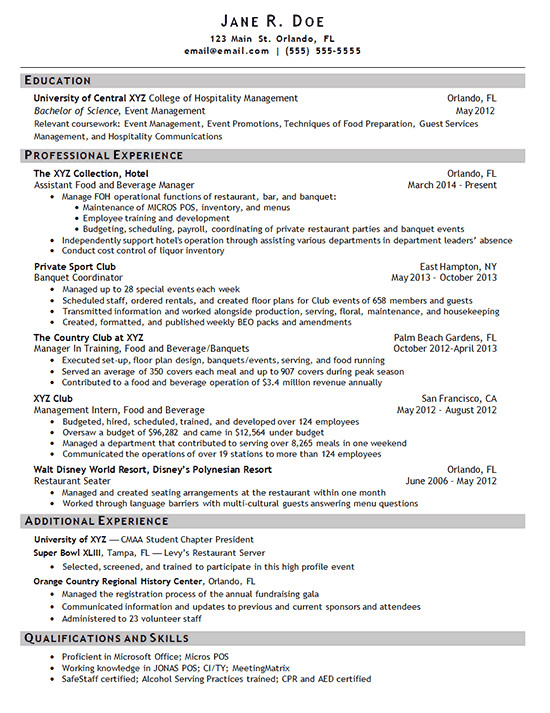 hotel management resume resumecompanion com from Resume Format For Hotel Management Job