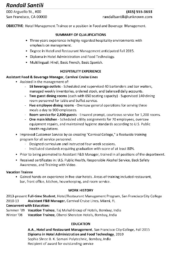 resume sample hotel management trainee from Resume Format For Hotel Management Job