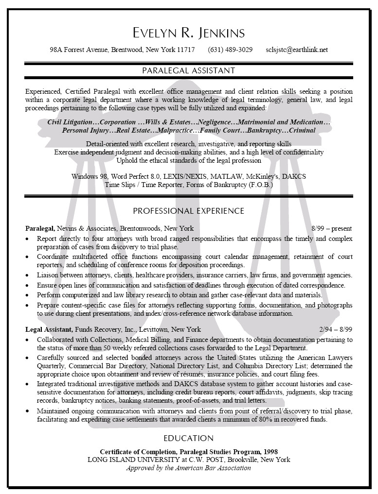 best legal assistant resume example livecareer from Resume Format For Legal Job