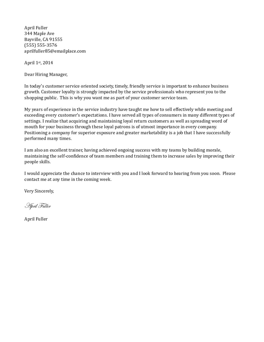 customer service cover letter free customer service from Sales And Customer Service Cover Letter