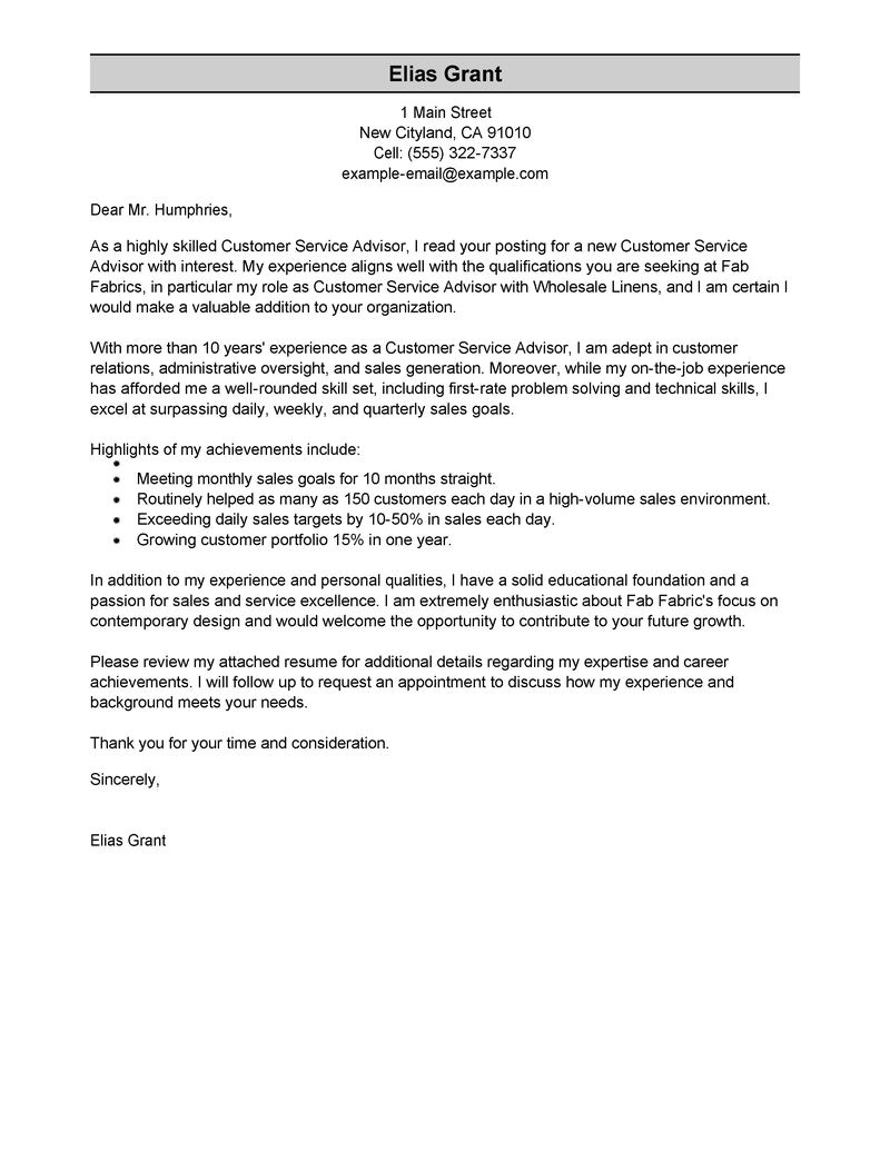 best sales customer service advisor cover letter examples from Sales And Customer Service Cover Letter