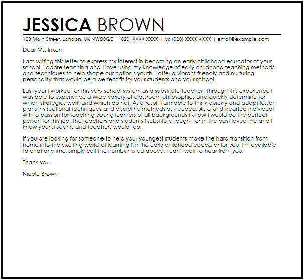 Sample Cover Letter for Early Childhood Educator has a variety pictures that associated to find out the most recent pictures of Sample Cover Letter for Early Childhood Educator here, and as well as you can acquire the pictures through our best Sample Cover Letter For Early Childhood Educator collection. Sample Cover Letter for Early Childhood Educator pictures in here are posted and uploaded by Adina Porter for your Sample Cover Letter For Early Childhood Educator images collection. The images that existed in Sample Cover Letter for Early Childhood Educator are consisting of best images and high vibes pictures.