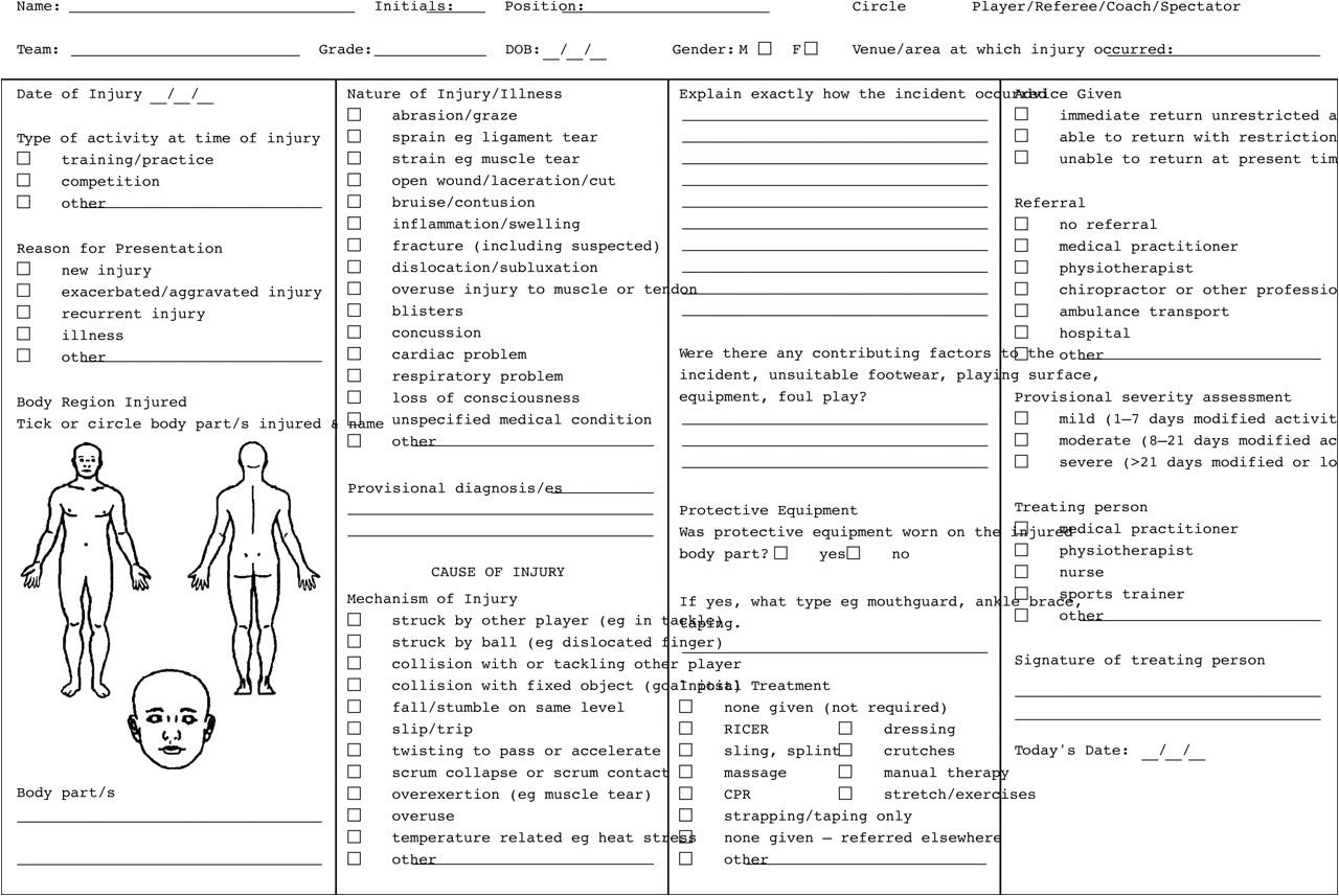 best photos of first report of injury template work from Sports Injury Report Form Template