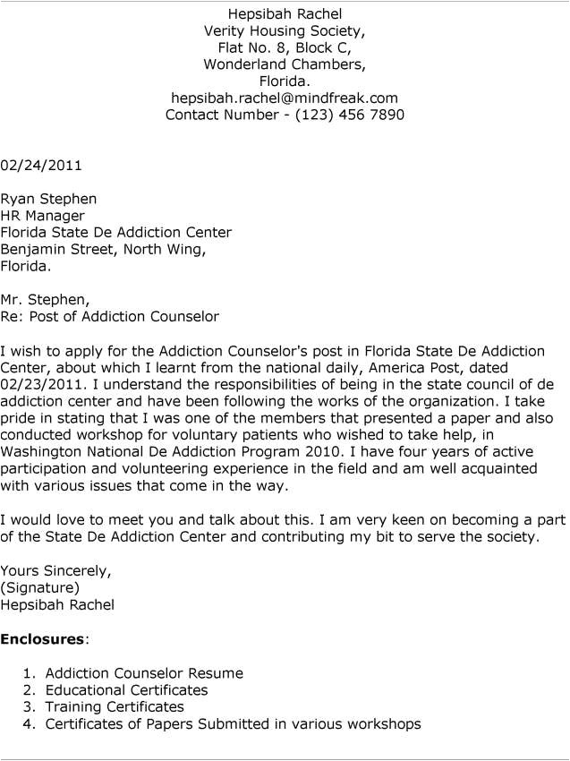 cover letter counselor letters font from Substance Abuse Counselor Cover Letter Sample