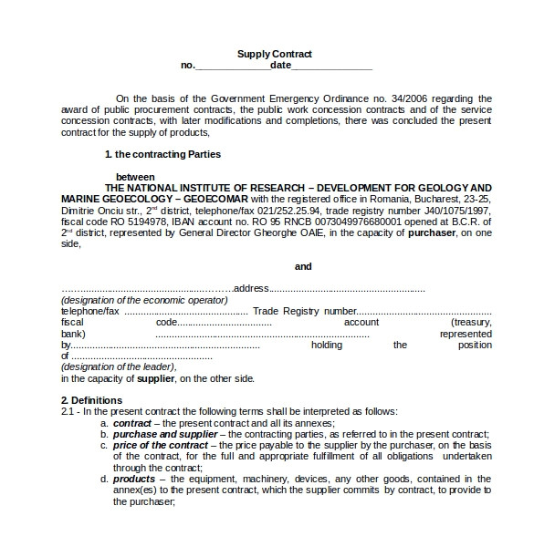 10 supply contract templates free word pdf apple for your supply contract templates requirement the article is the right answer it offers several samples of supply contract templates including goods contract product supply international supply among others feel free to browse each template supply contract template contract agreements formats you can find free supply contract template here supply contract is a well known type of contracts that may used to setup the criteria of working relationship between an individual company or organization and customer regarding the supply of particular goods or services service agreement form free contract for services a service agreement also known as a service contract or contract for services is a written agreement between a service provider and customer that outlines the terms of a particular service between the two parties you can use this service agreement in england wales northern ireland or scotland supply agreement contract sample sample templates every supply agreement contract must be put to writing to avoid any uncertainties in both the supplier and the client this is to ensure that all parties have a common understanding of the terms and conditions of the agreement and to make sure they are on the same page the samples we have on this page are available for you to download international supply contract template sample international contracts due to physical distance it is common that each of the parties sign in different dates and places this contract provides for both alternatives so it comes to choosing the most appropriate to each situation number of copies usually the parties sign two copies of the contract each party retaining one of them but cal 10 supply contract templates sample example free 10 supply contract templates sample example business entities making a deal with each other need to create a written document and not settle only for a verbal agreement business deals usually entail an exchange of money or property between parties which explains the need for contract templates free legal documents legal templates free contract templates agreement template and contract terms samples free samples documents a number of free samples are available for each of the document folders an agreement between purchaser and supplier 12 that the supplier shall not without the consent in writing of the purchaser assign or sub let the contract or any part thereof or make any agreement with any person company for the execution of any portion of the supply in this regard consent by the purchaser will not relieve the supplier from full and entire responsibility for this agreement 13 that the supplier shall indemnify the service contracts supply agreements businessballs com service contracts and trading supply agreements templates and examples how to write services contracts free resources for work and life from businessballs com services contract sample template word pdf the document will provide both parties with clear terms dealing with both core aspects of a services contract such as pay hours and location of work as well as broader issues such as competition confidentiality sub contracting liabilities and intellectual property