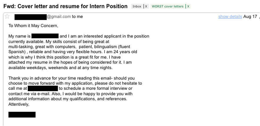 here are 12 of the worst cover letters we 39 ve ever received from The Best Cover Letter I Ever Received