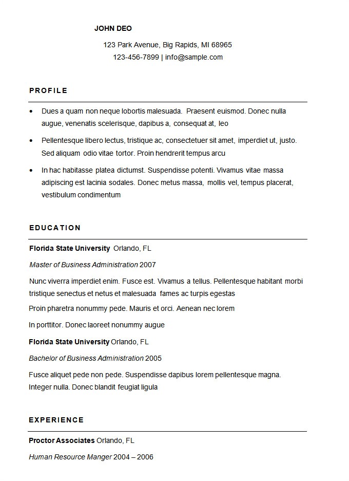 This resume template is the engagement of chronological and working formats. It is used in imitation of you compulsion more enlightened and focused resume for any particular position. The sequence of sections in this template is as follows: